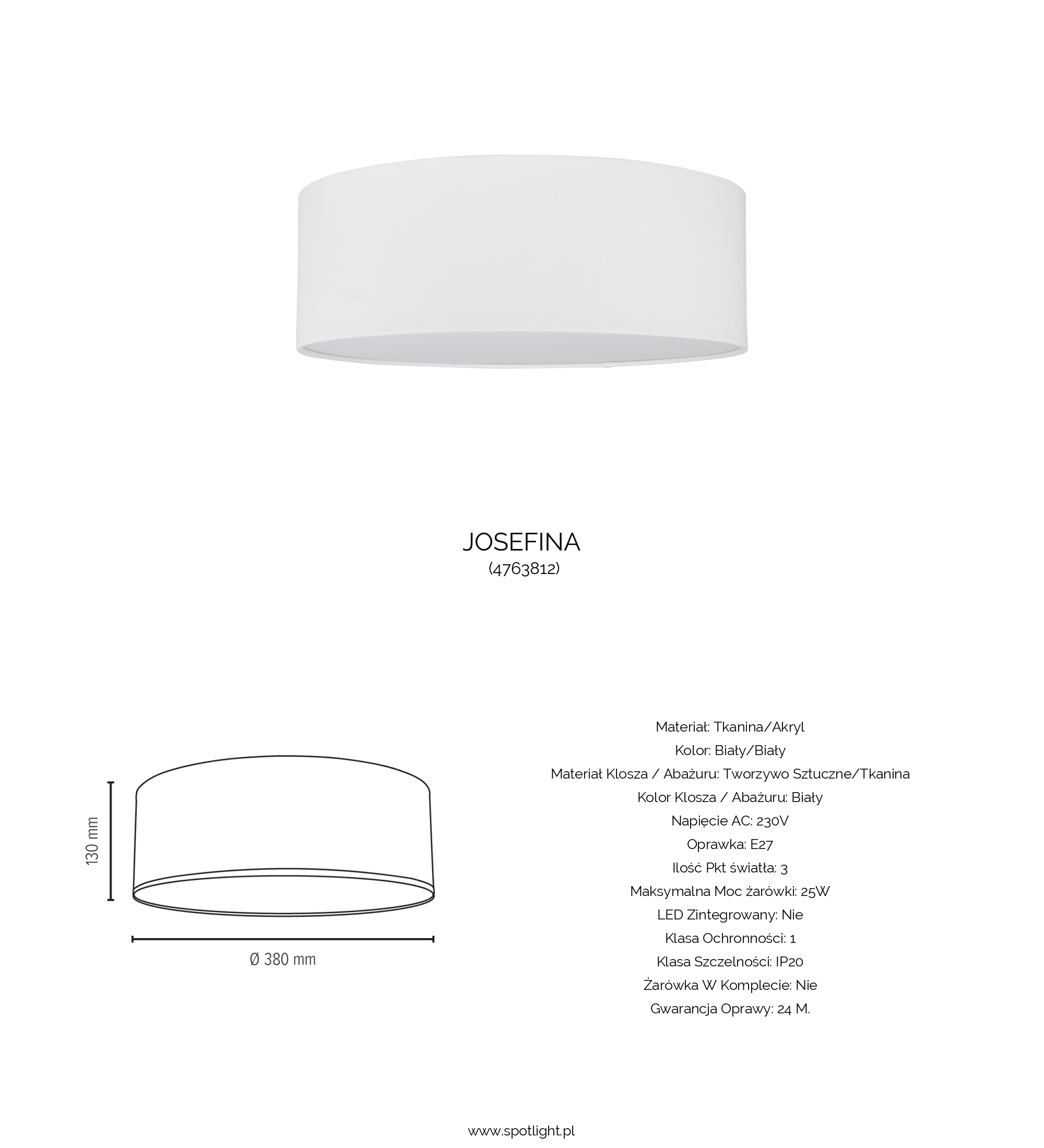 | Materiał klosza / abażuru | Tworzywo Sztuczne/Tkanina |