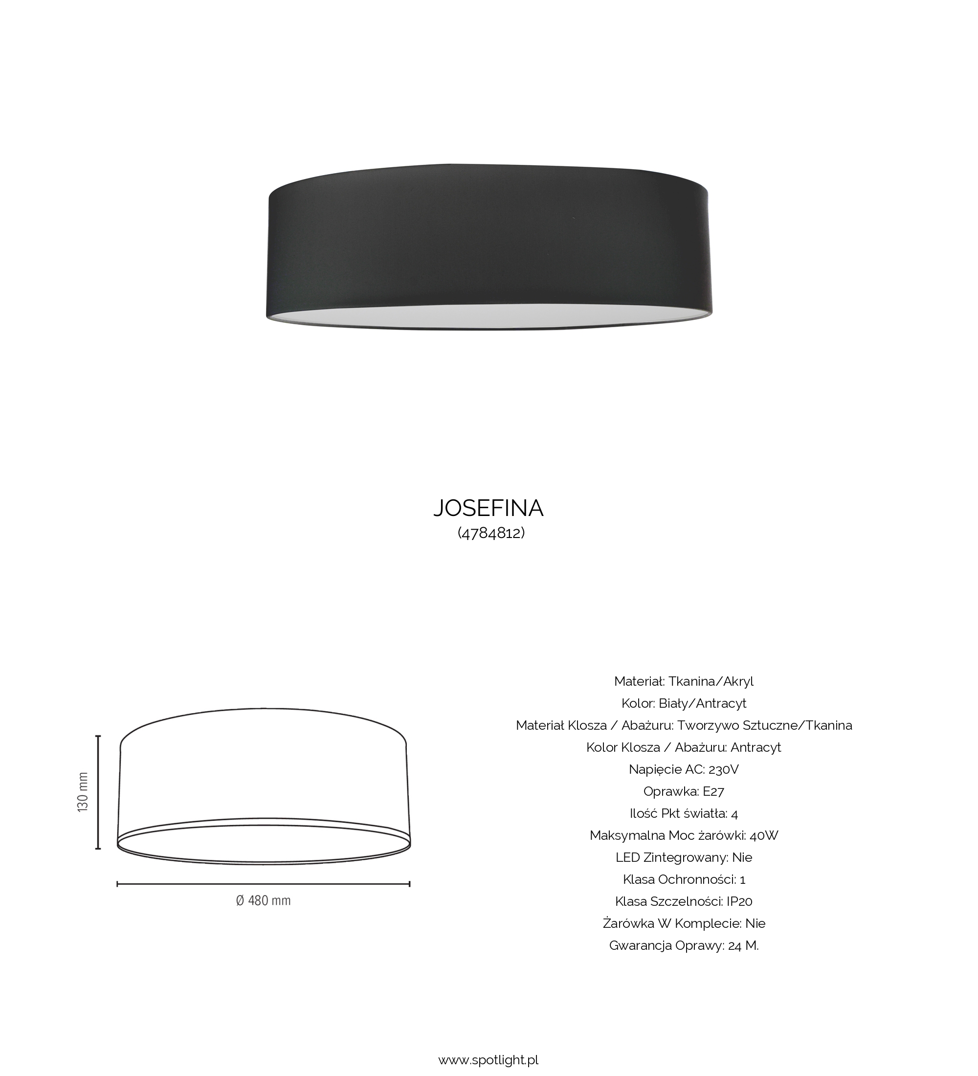 | Kolor klosza / abażuru | Antracyt |