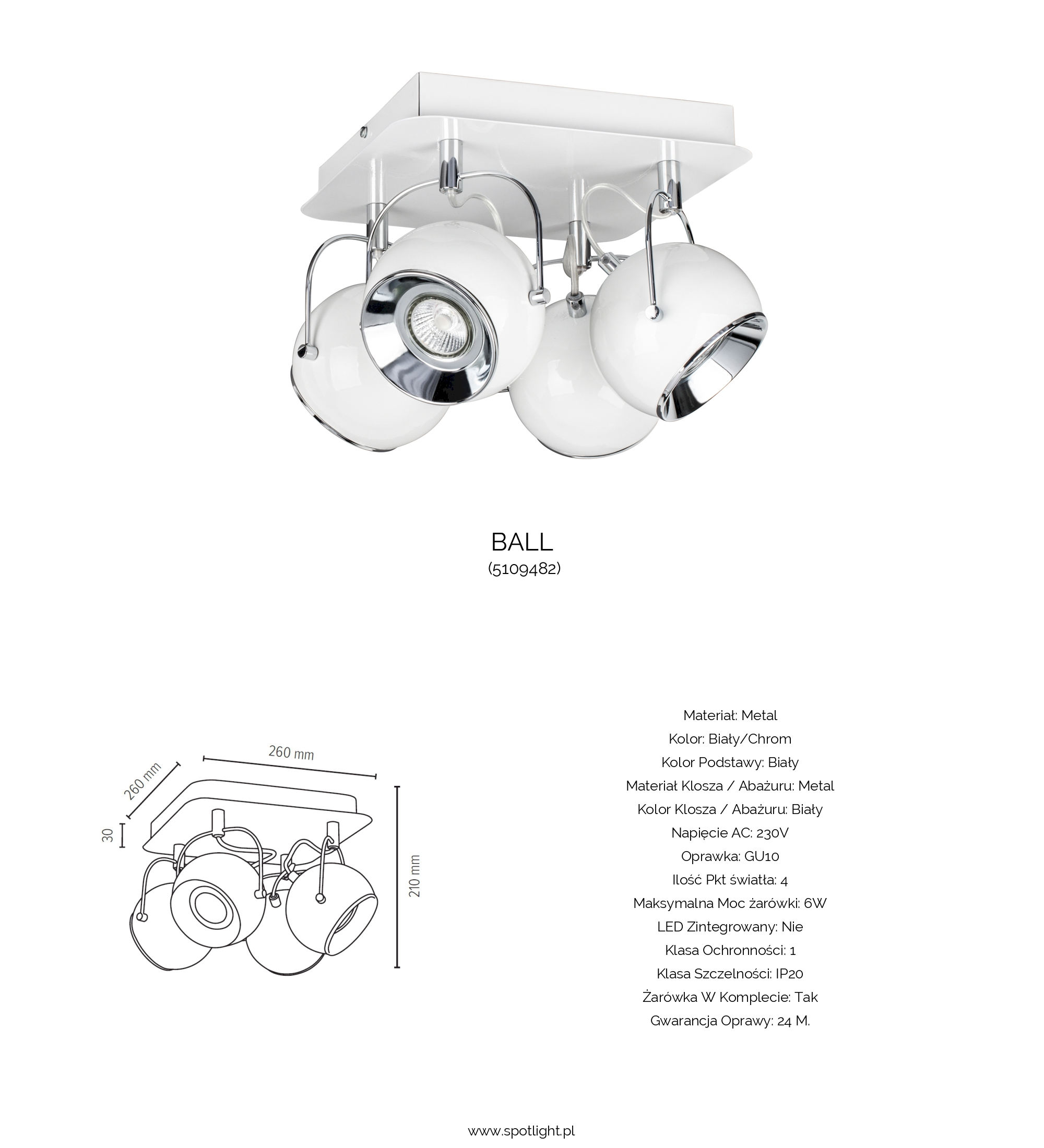 Socket 4xGu10 max.6W