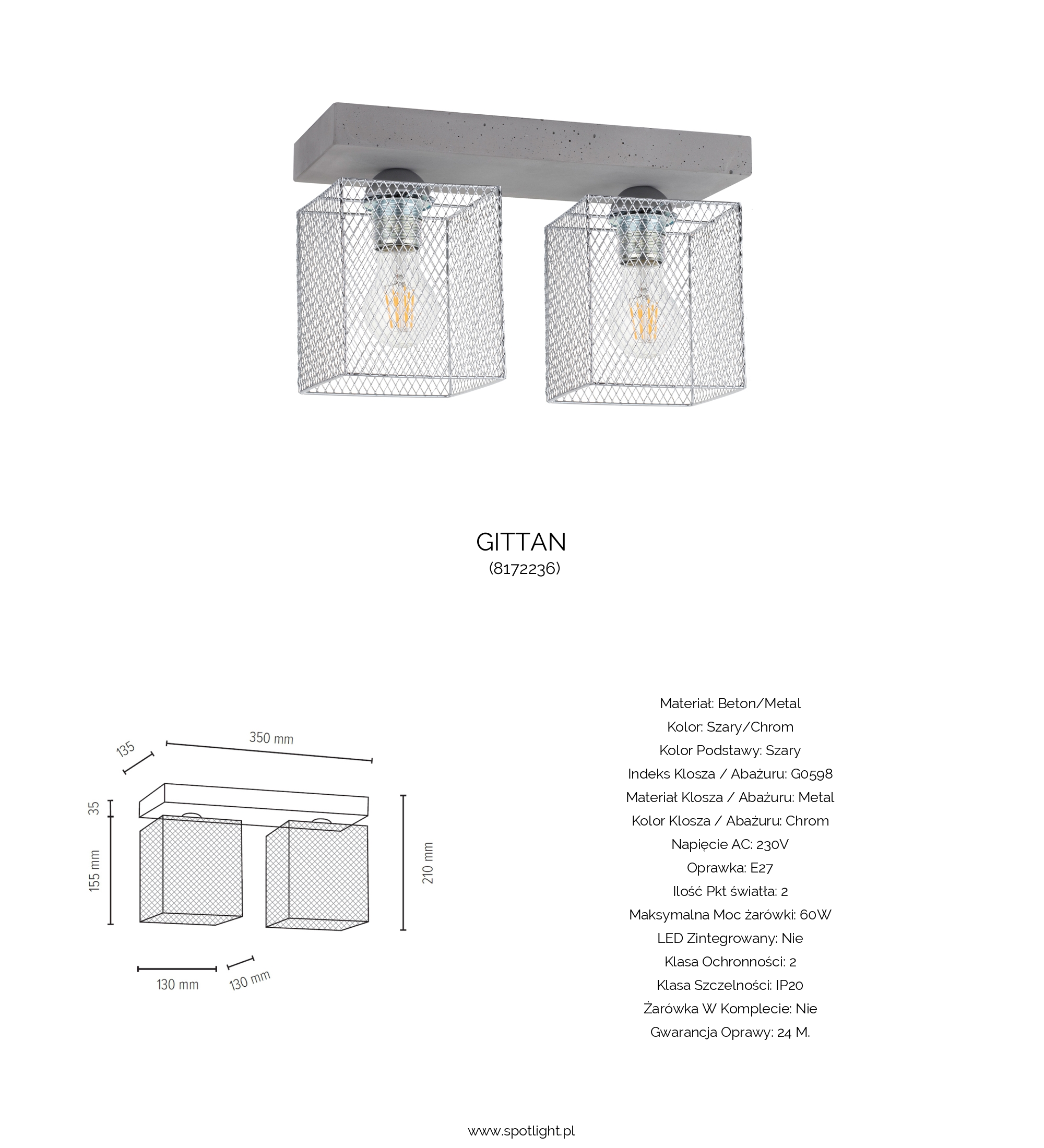 | Fassung | 2xE27 max. 60W |