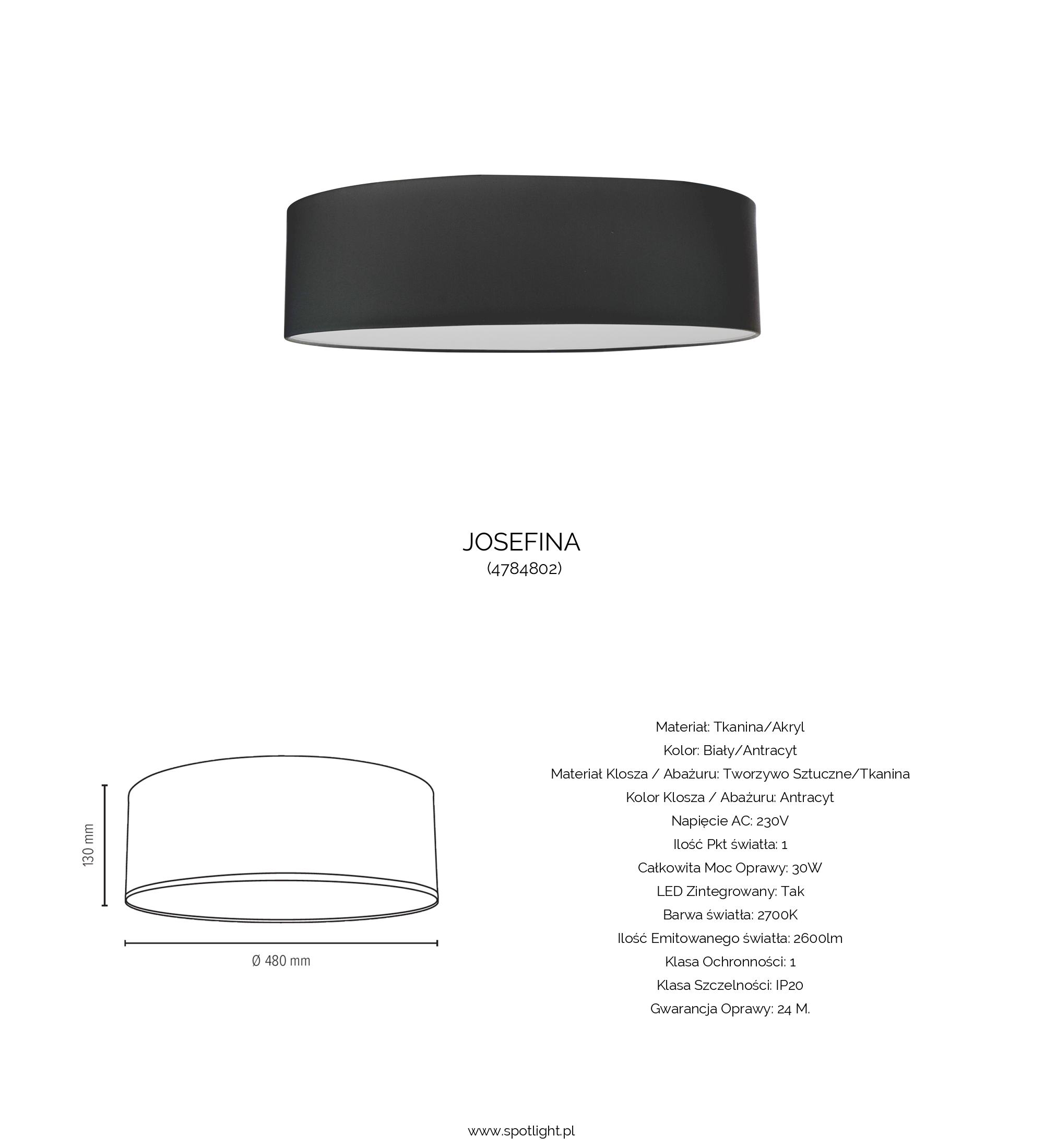 | Kolor klosza / abażuru | Antracyt |