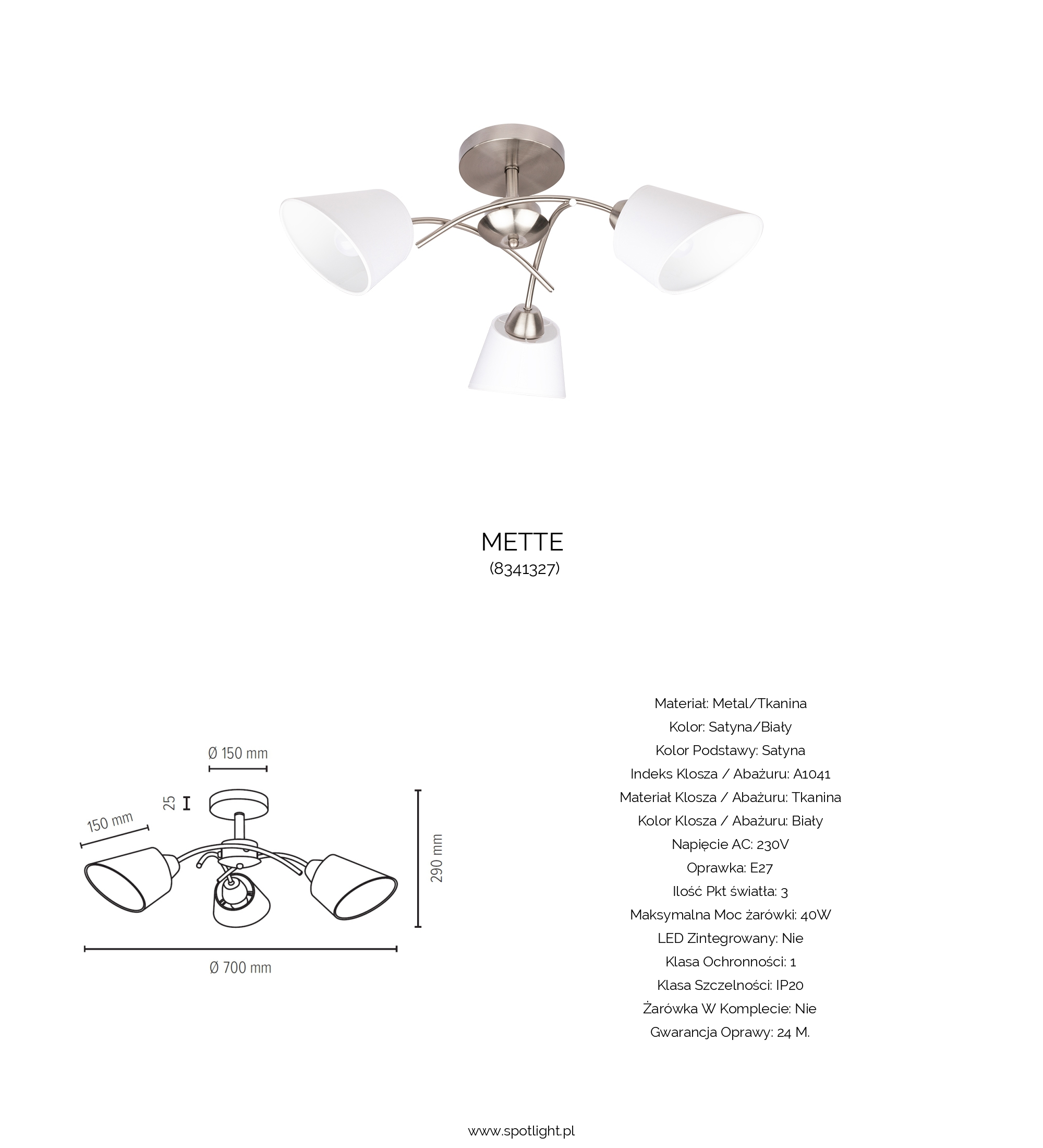 | Oprawka | 3xE27 max. 40W |