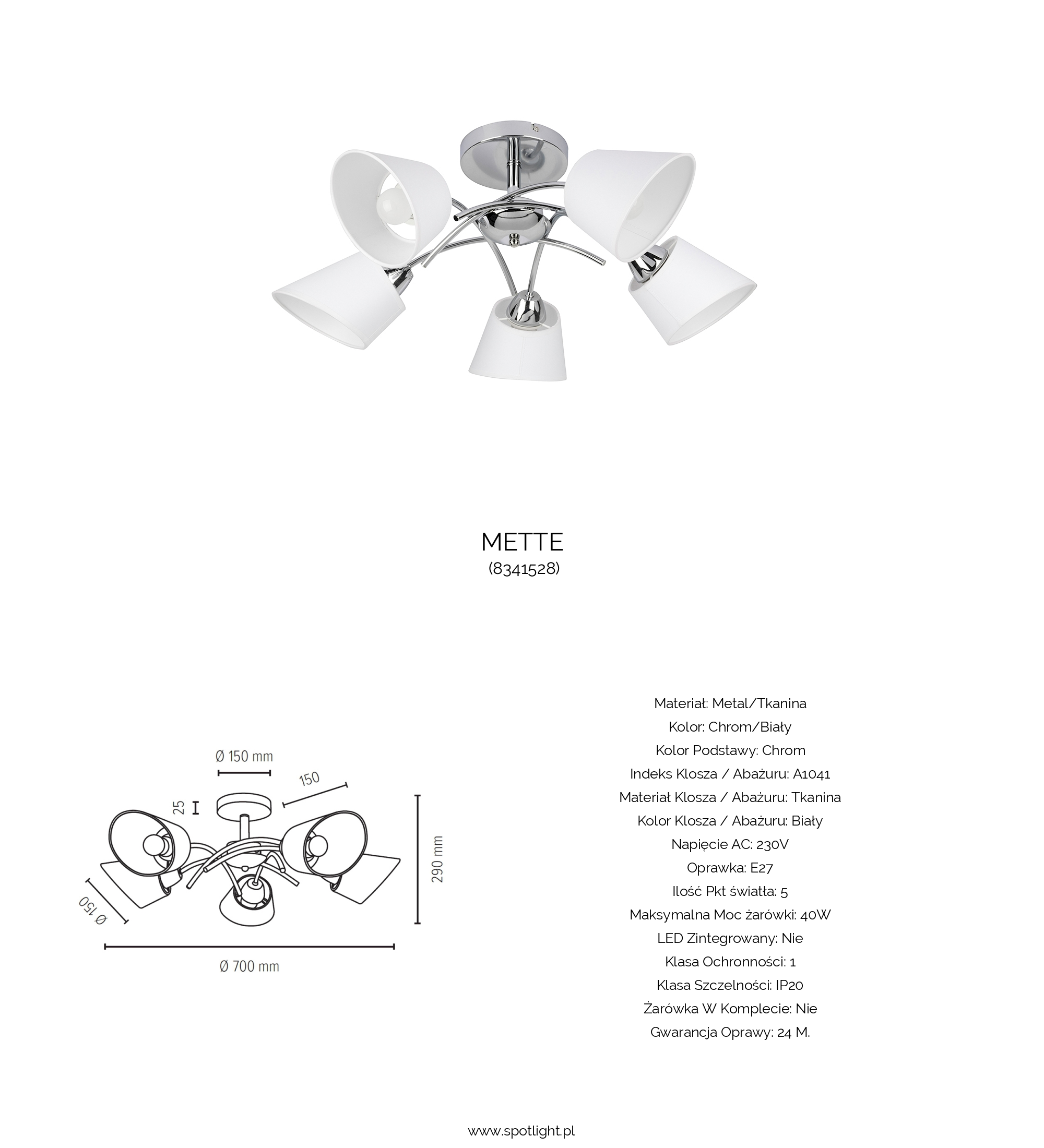 | Oprawka | 5xE27 max. 40W |