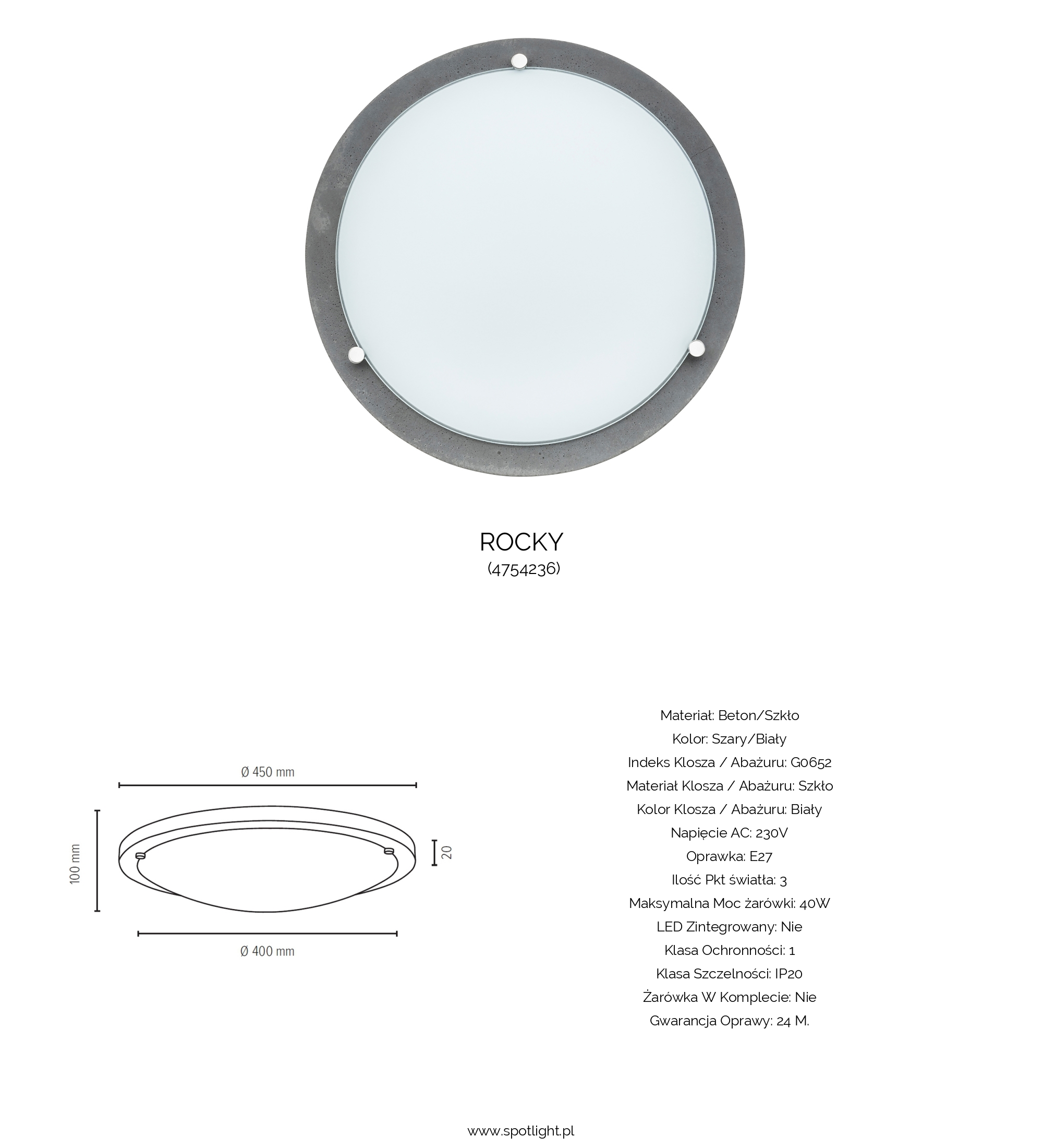 | Kolor klosza / abażuru | Biały |