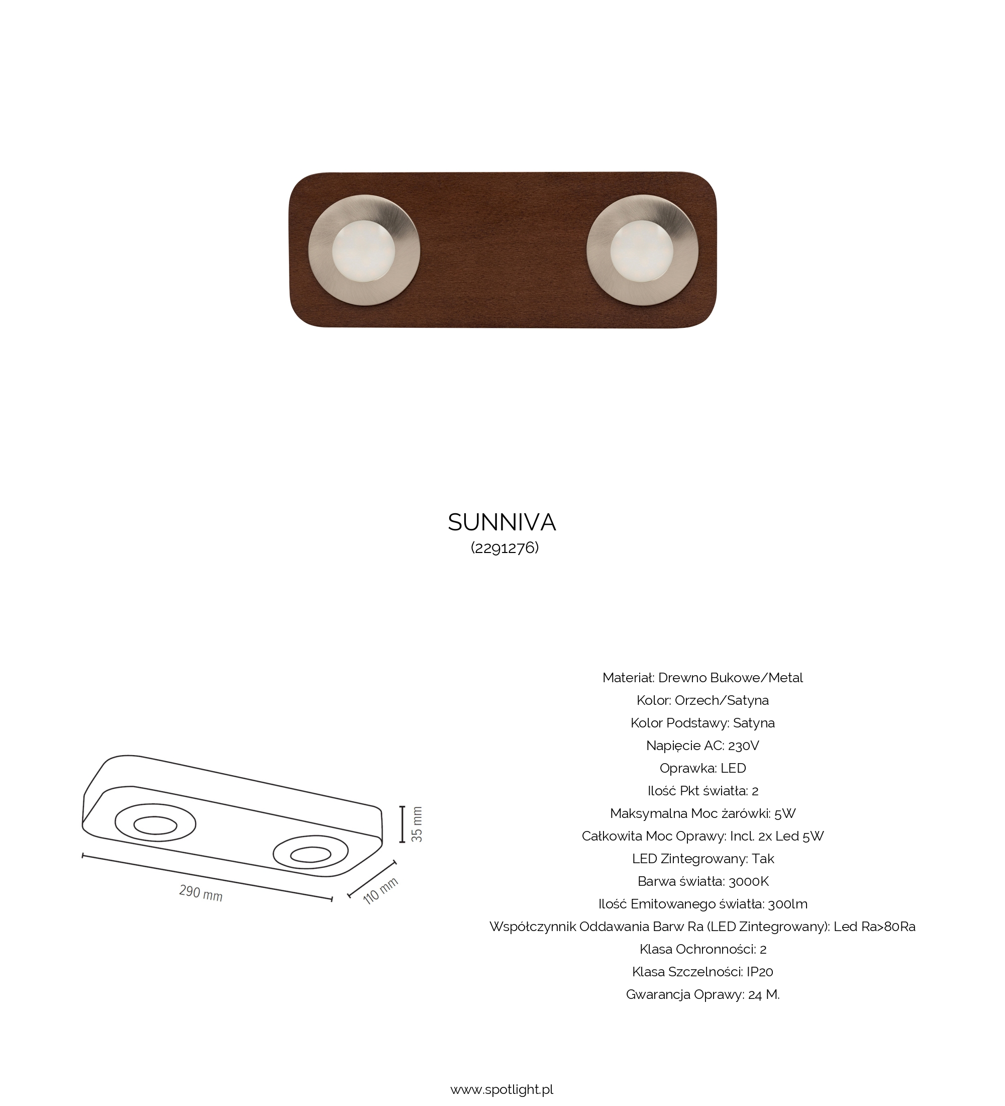 | Całkowita moc oprawy | Incl. 2x Led 5W |