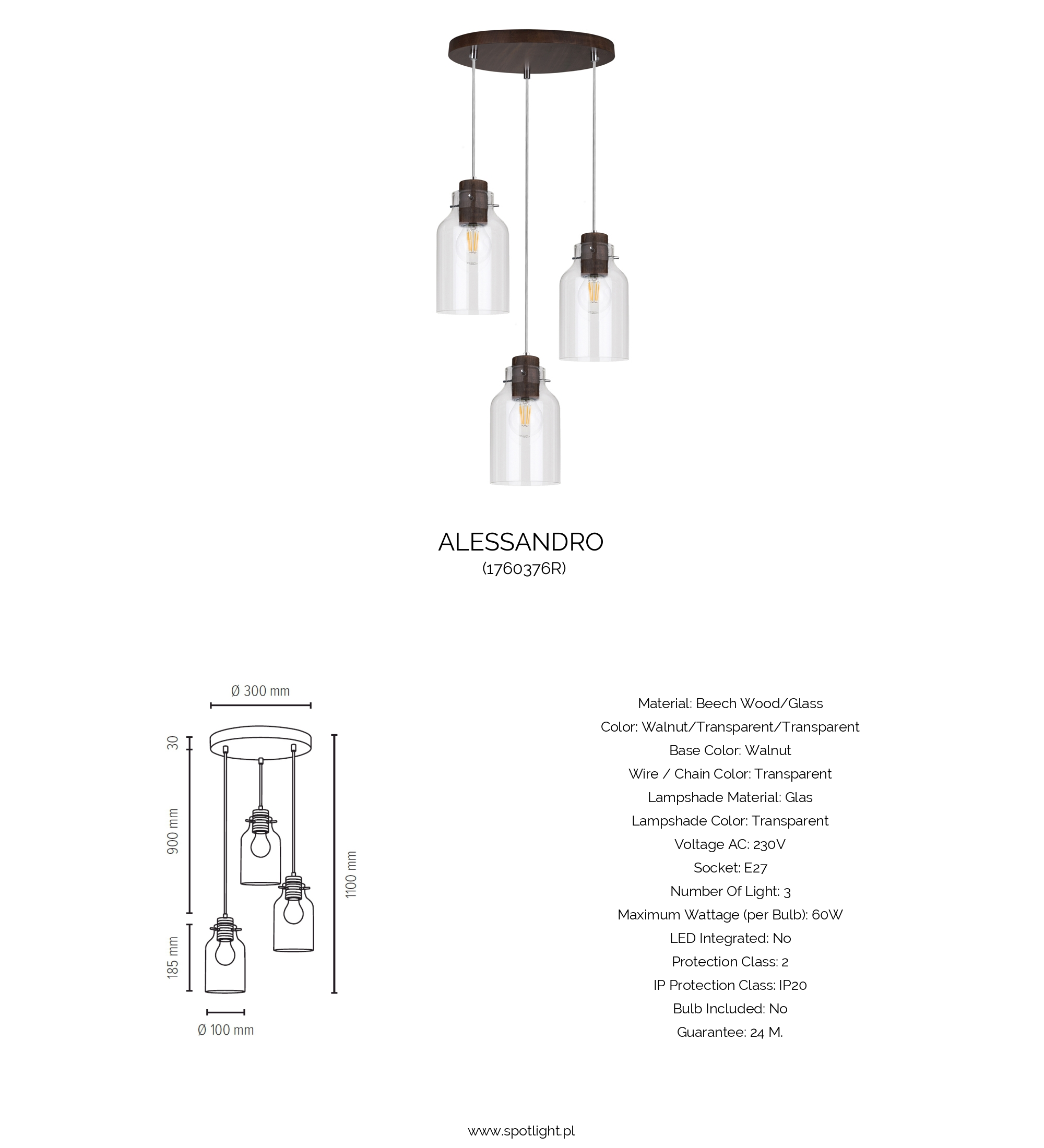 Socket 3xE27 max. 60W