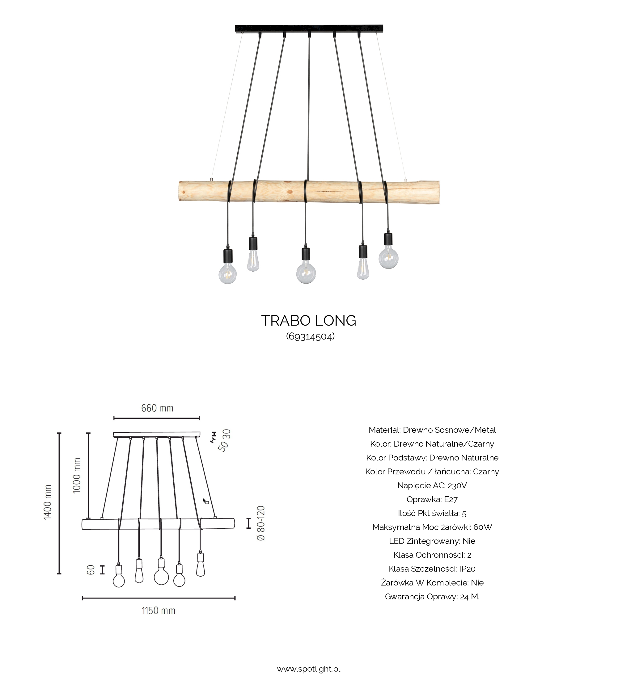 Socket 5xE27 max. 60W