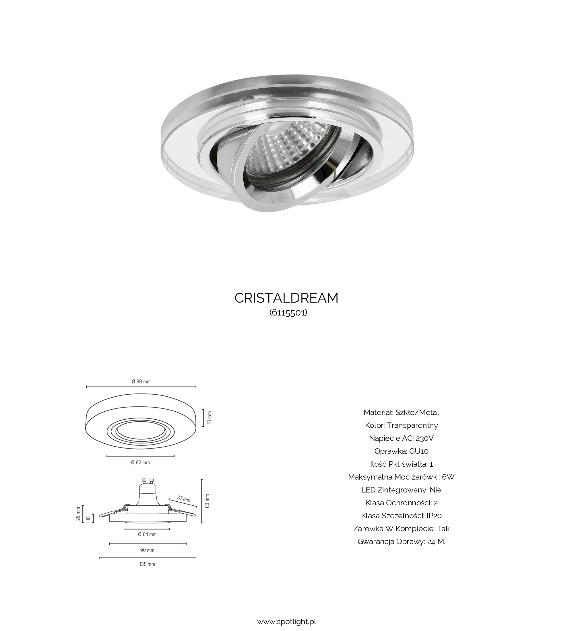Oprawka 1xGU10 max.6W